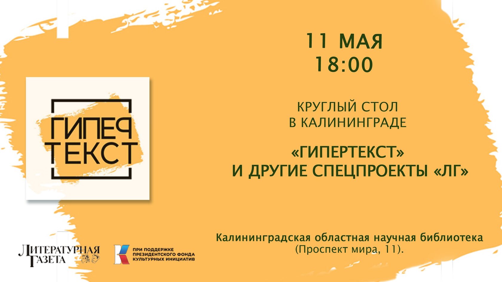 11 мая в 18:00 в Калининграде пройдёт круглый стол «"ГИПЕРТЕКСТ" и другие спецпроекты "Литературной газеты"».